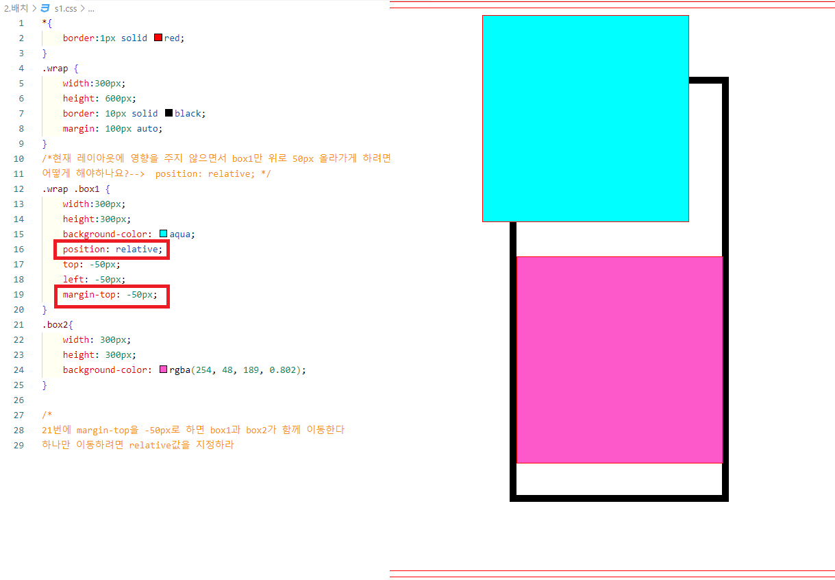 현재 레이아웃에 영향을 주지(absolute) 않으면서 자기(아쿠아box1만) 자신만 움직이게 한다